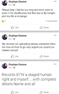 Onyinye Onome, in a series of Facebook posts and live videos, alleged that her life is in danger for exposing her husband, named Chukwutem Victor Inalu, as he allegedly has the backing of powerful men.